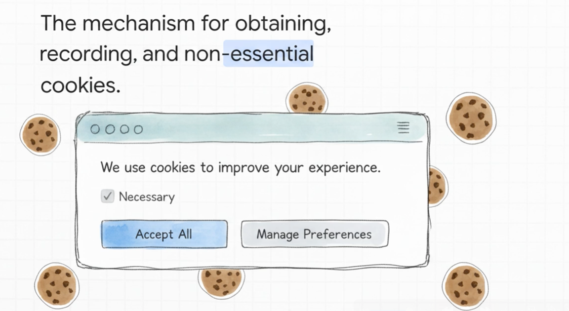 What it is: The mechanism through which you obtain, record, and manage user consent for non-essential cookies and tracking technologies.