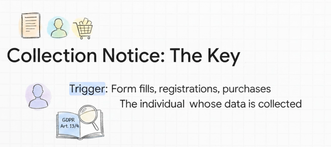 What it is: The notice provided to a data subject at the moment their personal data is collected — or, where data is obtained indirectly, before processing begins.
